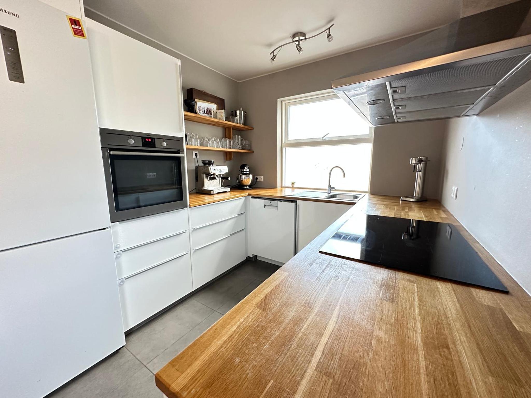 这间公寓布局宽敞,配备现代化设施,确保您入住舒适无忧。住客可在设备齐全的厨房自制美食,尽享新鲜的冰岛本地食材。宽敞的起居空间为全家人提供了理想的放松环境,让您在一天探险后惬意休憩。免费无线网络和温馨氛围,使本公寓无论是短期度假还是长期旅居,都是理想之选。