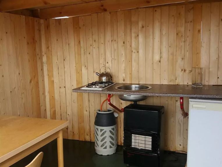 这间舒适的小屋拥有质朴的木质内饰和便利设施,是您放松身心的理想场所。一张舒适的双人床和所有必要的床上用品非常适合您在一天的冒险之后蜷缩起来。共用浴室提供充足的热水和现代化的淋浴。提供毛巾、肥皂、洗发水和床单。