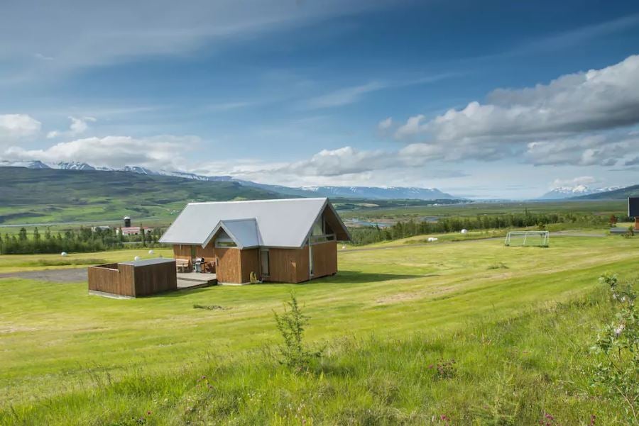这间舒适、现代化的小屋可容纳 8 人,白天探索冰岛北部,晚上尽情放松。