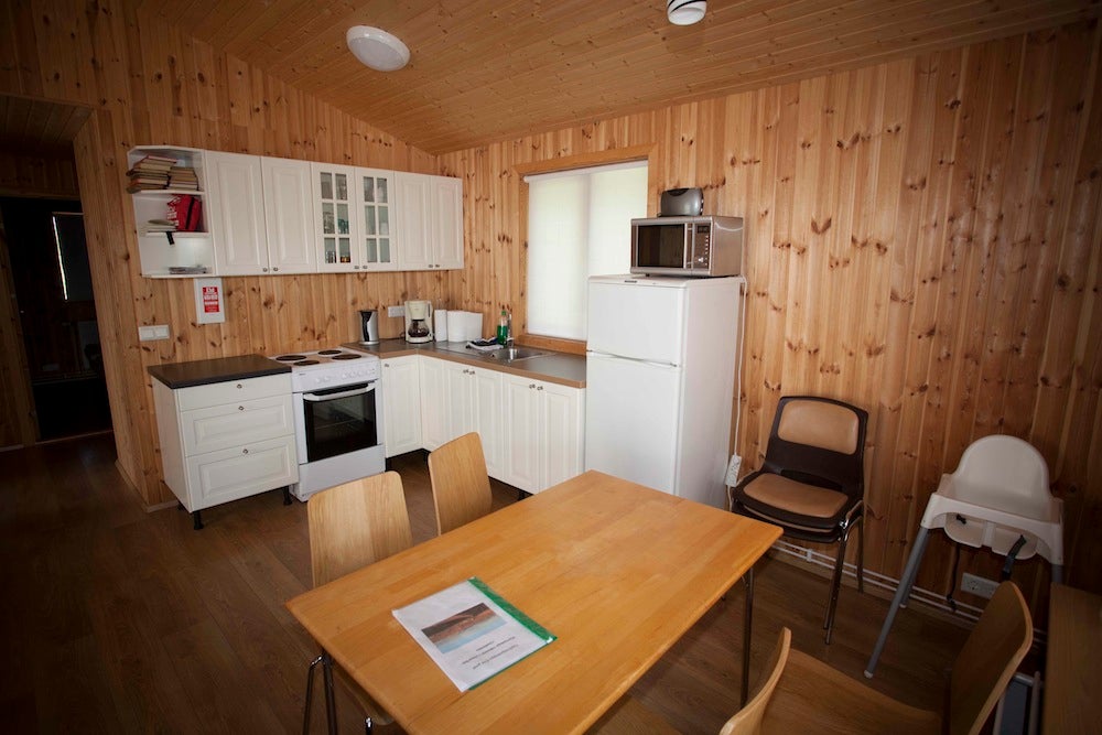 Glaðheimar 29 遵循乡村主题,其木板条内饰和简单而优雅的家具体现了冰岛乡村生活。这间两卧室小屋的一个房间设有一张主床,另一个房间设有两张单人床。起居区的沙发还可兼作一张床,可供另外两位客人入住,总共可入住 6 人。如果您携带婴儿旅行,可以使用婴儿床。浴室配有马桶、淋浴、洗脸盆和镜子。提供床单和毛巾。