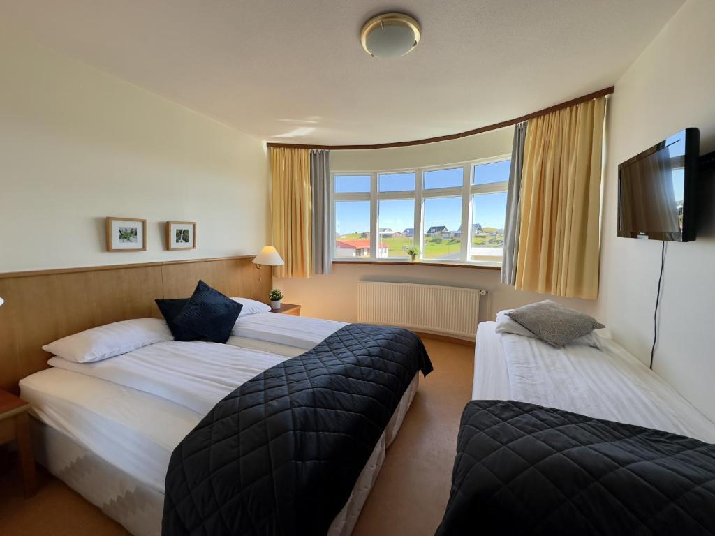 Adventure Hotel Hellissandur provides rooms designed to meet the needs of all travelers. You can choose a family room with two twin beds, a standard double or twin room for two, or a triple room with a double and a single bed. Each option offers comfort and convenience.