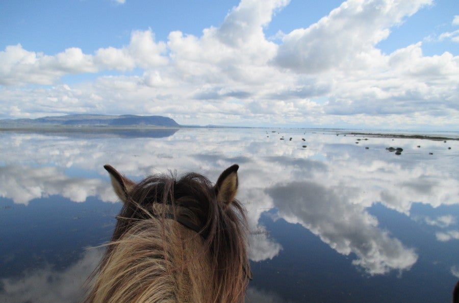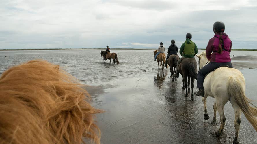当你沿着沙滩继续前行时,你很快就会到达令人印象深刻的冰川河Olfusa汇入海洋的地方,形成了一个巨大的三角洲。河流与海洋的交汇创造了一个既崎岖又美丽的景观。在旅行的某个时刻,你将有机会像几个世纪以来的冰岛人一样骑马过河。