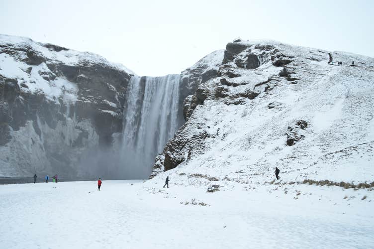 第二天的冬季之旅将带您深入南海岸,您将参观著名的塞里雅兰瀑布(Seljalandsfoss)和斯科加瀑布(Skogafoss),它们都以其垂直的60米水流而闻名。您还将探索那些较少被游客发现但同样美丽的秘密瀑布——秘密瀑布(Gljufrabui)和Irafoss瀑布。