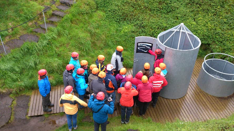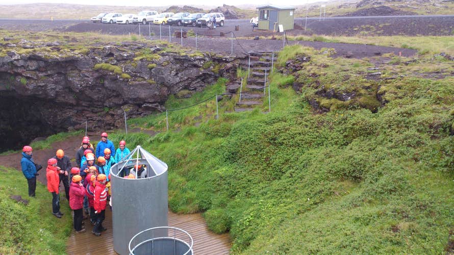 旅行团将从瓦汀舍利尔洞穴(Vatnshellir)开始,该洞穴位于美丽的斯奈山冰川(Snaefellsjokull)以南。请注意,行程不提供住宿接送服务,因此请确保在导览开始前至少提前10分钟到达洞穴。您和团队将在洞穴入口与导游会合,导游会为您进行简要说明,并在旅途中提供所有必要的信息。