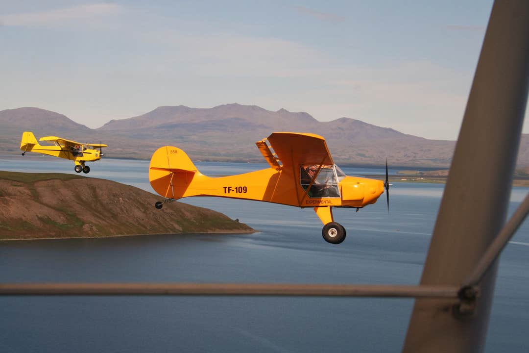 您的冒险从您踏上雷克雅未克附近的Grund机场开始。此行程提供从雷克雅未克的接送服务。到达后,您将与私人飞行教练会面,他将专业地指导您乘坐两座超轻型飞机开始这次旅程。准备好迎接一股肾上腺素激增的感觉,您的教练将向您介绍飞机,并提供必要的安全指示。