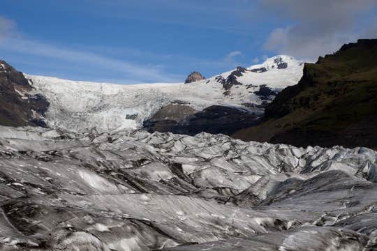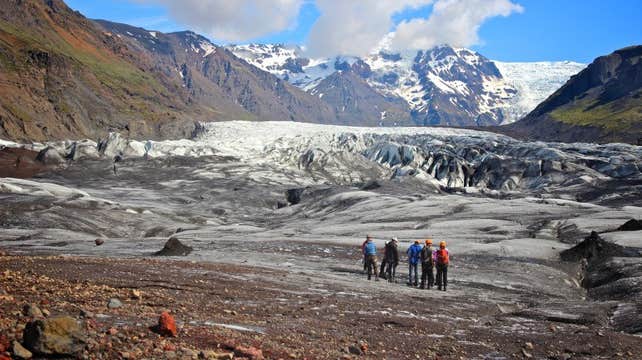 您将在冰川脚下与向导会面,冰川向导专业又友好,会为您提供所需的所有专业器材,包括头盔、冰爪、冰镐。您可以在预订过程中选择租赁登山鞋和防水户外衣裤。向导会为您详细讲解在冰川上行走的重要安全事项,旅行团途中,则会为您介绍丰富的冰川知识和冰岛相关的历史文化信息。