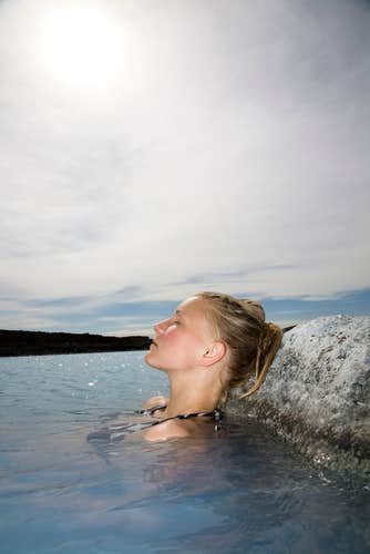 最后,我们将在米湖温泉结束一天的活动,放松身心。如果您在预订时增购了米湖温泉门票,那么您将可以感受米湖温泉的魅力所在。虽然米湖温泉的设施相比蓝湖温泉略显简单,但依然完备,而且同样拥有乳蓝色的温泉水和独一无二的景观。冰岛的所有地热温泉水中都含有硫,但这里的浓度相比其他温泉要更高一些,对皮肤和呼吸系统大有益处。