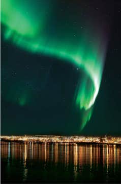 观看极光所需的条件仅是无云、黑暗的天空、足够的太阳活动以及一点运气。置身于漆黑的海湾中,头顶是繁星点点,极光出现的机会比在城市里寻找没有光污染的地方要高得多。