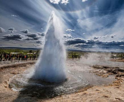 接下来,您将游览盖歇尔地热区,这里有喷发的间歇泉和冒泡的泥浆池,景色迷人。尤其是史托克(Strokkur)间歇泉,每隔一段时间就会向空中喷射高达30米的壮丽水柱,让您叹为观止。周围的温泉和泥浆池营造出一种超凡脱俗的氛围,让人领略到冰岛的地热力量。