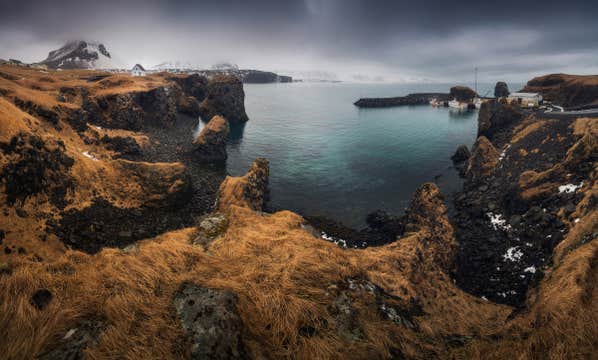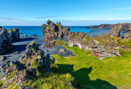 阿尔纳斯塔皮村是行程中的一个亮点。这个古老的渔村展现了冰岛的海岸生活。在这里,您可以参观风景如画的港口区域和夏季栖息着大量海鸟的玄武岩悬崖。斯奈山半岛的另一个特色是Djupalonssandur海滩,这里的崎岖海岸线与古老的熔岩田交织。由于黑沙滩、拍击海浪和迷人的岩石结构,Djupalonssandur海滩是散步和拍照的绝佳地点。