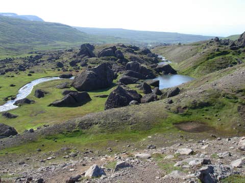旅行团长达9小时,您将在此度过一天的精彩探险时间。Stórurð坐落于迪尔山(Dyrfjöll)以西的一座小冰川下,地表上散落着形状大小各异的石块;而巨石之间则是葱翠的绿野,偶尔还点缀着或晶蓝或幽绿的湖泊,以及常年不化的积雪冰原。粗犷的巨石、平静的湖泊与纯净的冰雪彼此拼接,形成了梦幻般的对比,一望无垠的开阔旷野景象更令人心旷神怡。
