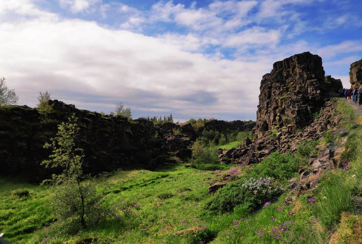 旅行的首站是黄金圈景区的辛格维利尔国家公园(Þingvellir)。辛格维利尔是冰岛主陆唯一一处联合国世界文化遗产,以厚重的历史与壮丽的自然而闻名于世。大西洋中脊横贯国家公园,北美与亚欧两大板块被分隔开来,衍生了无数峡谷与裂缝。公元930年,定居冰岛的维京先民还在此处建立了世界上第一个民主议会。辛格维利尔是壮美一词的化身,您将领略到冰岛自然与历史令人屏息的恢弘之美。