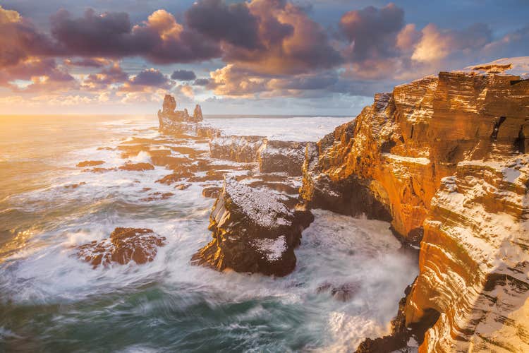接下来,您将前往Ytri-Tunga农场,这里是半岛上著名的海豹栖息地。这些慵懒的海豹喜欢趴在岸边晒太阳,对游客的围观毫不在意,十分可爱。随后,您将探访两个风景如画的渔村——阿尔纳斯塔皮(Arnarstapi)和海德纳尔(Hellnar),这些小镇充满神秘色彩,被认为与冰岛的魔法和传说息息相关。沿着海岸漫步,您可以欣赏奇特的玄武岩岩层,感受波涛汹涌的海浪拍打陡峭悬崖的壮观景象。