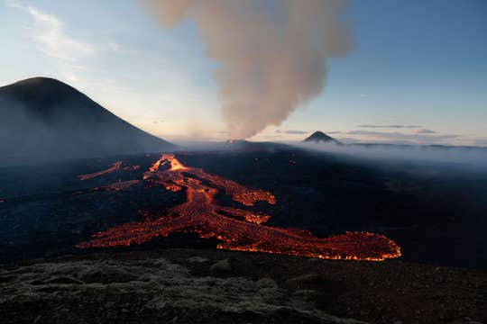 冰岛因位于大西洋中脊的交汇处(两大板块交会),拥有大约130座活火山及休眠火山。这一地质热点近年来屡次见证火山爆发,尤其是在雷克雅内斯半岛(Reykjanes Peninsula)。