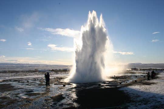 最后一站是间歇泉地热区,这里有温泉池以及间歇泉,其中史托克(Strokkur)间歇喷泉知名度较高。最早发现的间歇泉已不再喷发,而史托克间歇泉则是值得一看的雄伟奇观,它每隔4-8分钟便喷发出平均高度达15-20米的水柱,有时甚至高达40米。